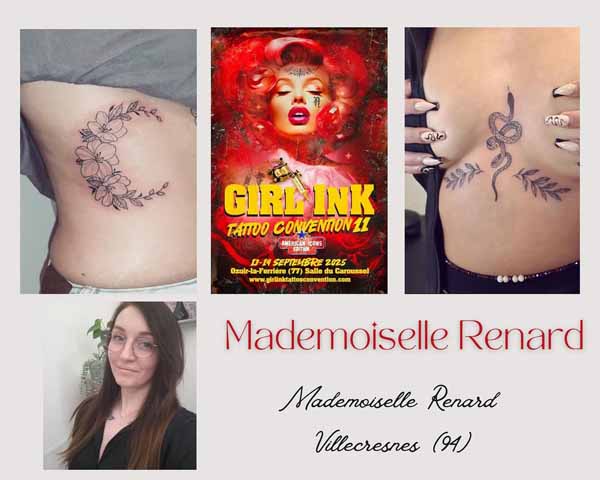 Les tatoueuses présentes à l’édition 2025 seront annoncées au fur et à mesure sur ce site. Avant de contacter une des artistes, assurez-vous de lui soumettre un projet qui correspond à son style de prédilection…